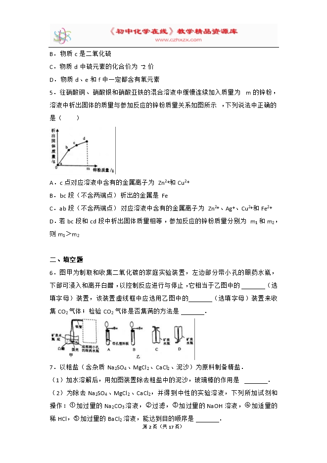 所属专辑: 《2017年各省市中考化学真题》专辑