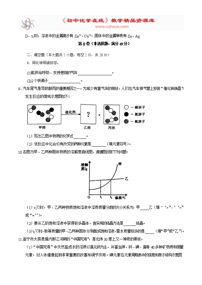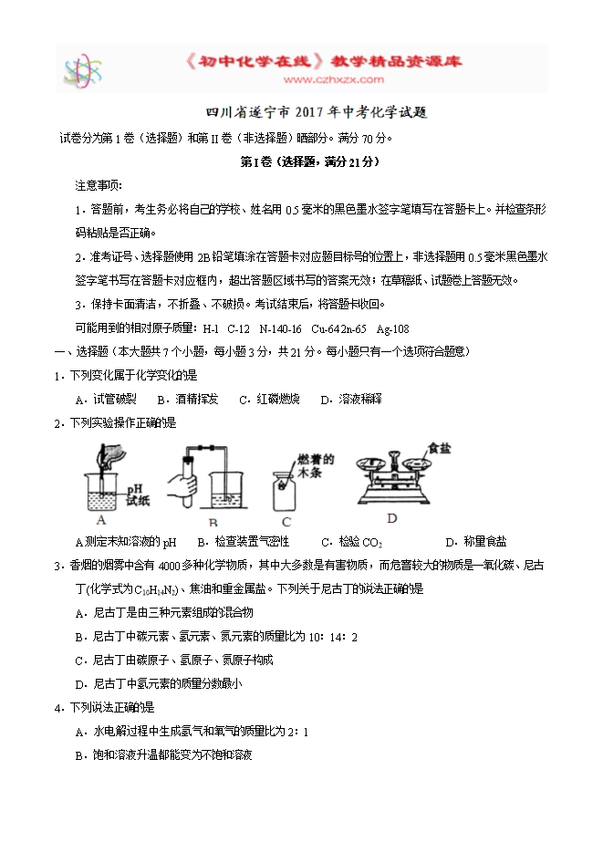 2017年四川省遂宁市中考化学试题(精校word版,无答案)