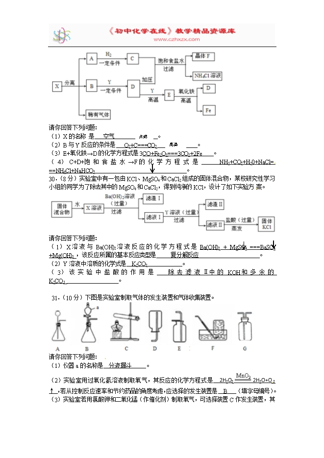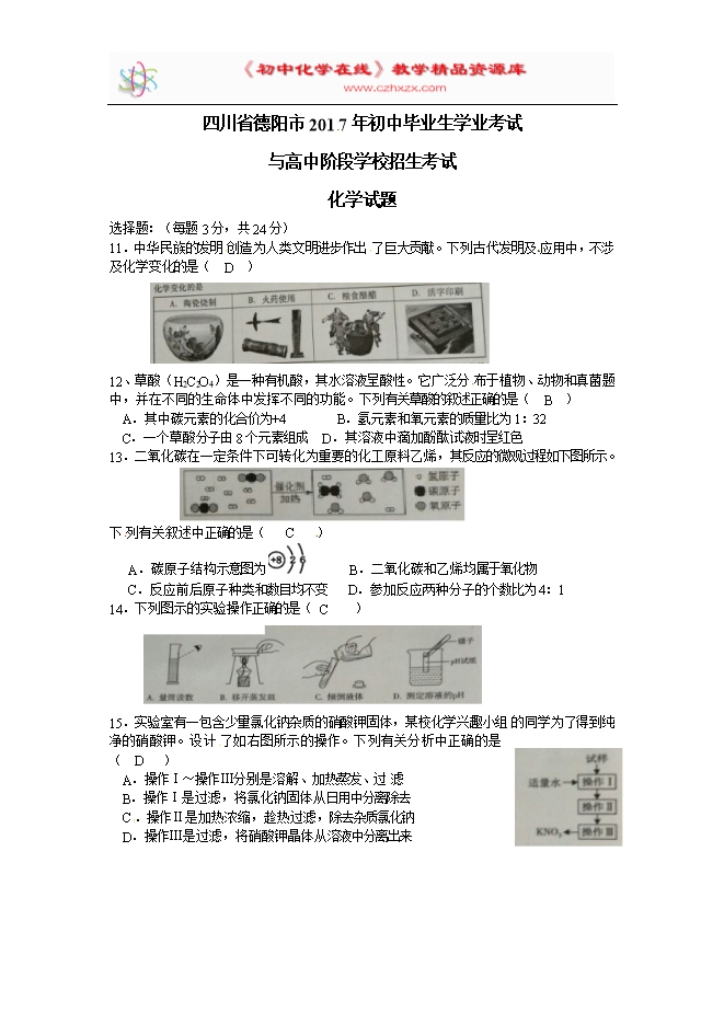 2017年四川省德阳市中考化学试题(word版,含答案)