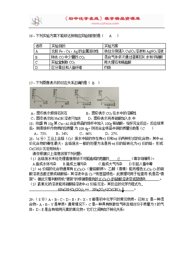 所属专辑: 《2017年各省市中考化学真题》专辑