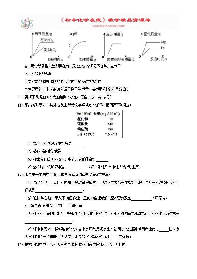 所属专辑: 《2017年各省市中考化学真题》专辑