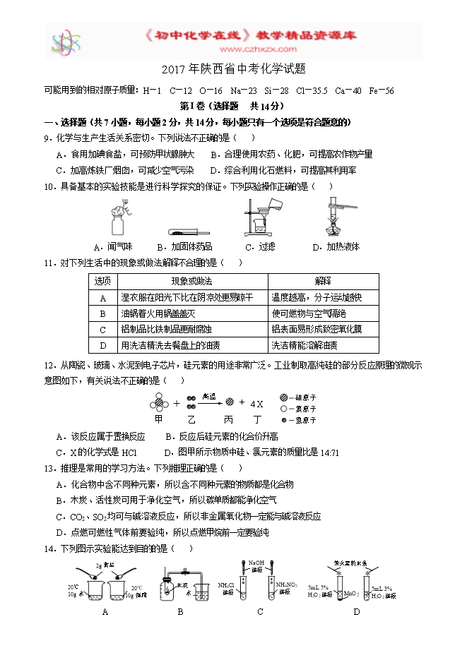 - 上一份试卷:2017年四川省南充市中考化学试题(精校word,含答案)