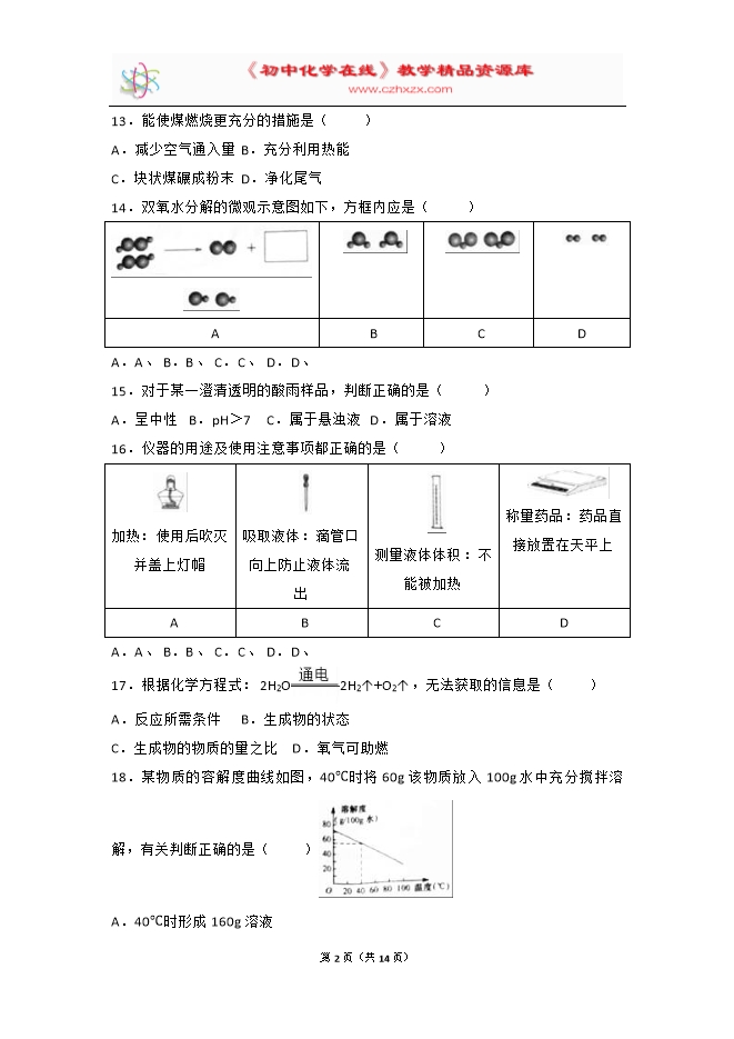 - 下一份试卷:2017年浙江省丽水市中考化学试卷(word解析版)