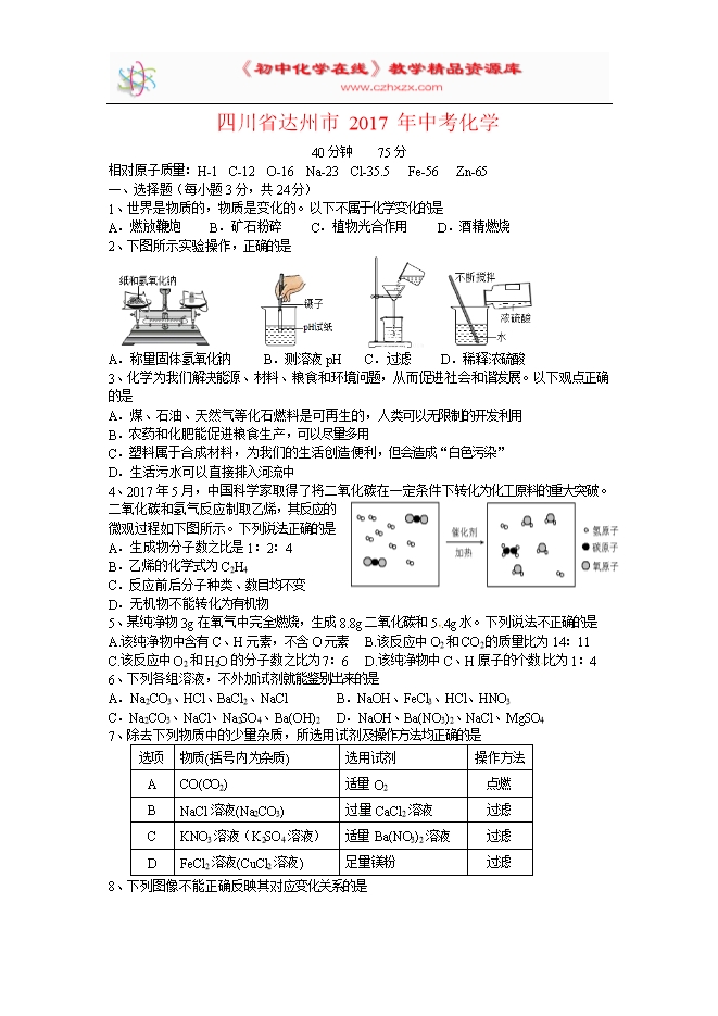 所属专辑: 《2017年各省市中考化学真题》专辑