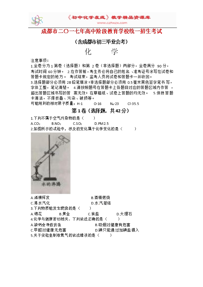 2017年四川省成都市中考化学试题(word版,含答案)