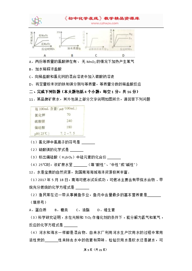 所属专辑: 《2017年各省市中考化学真题》专辑