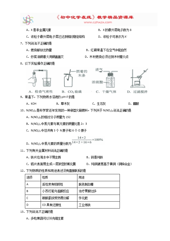所属专辑: 《2017年各省市中考化学真题》专辑