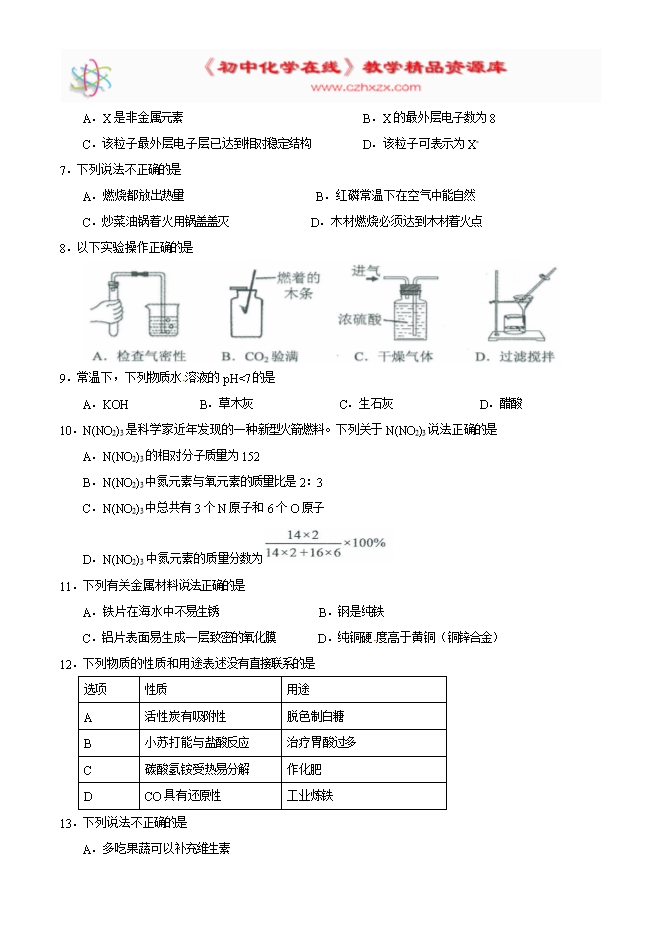 所属专辑: 《2017年各省市中考化学真题》专辑