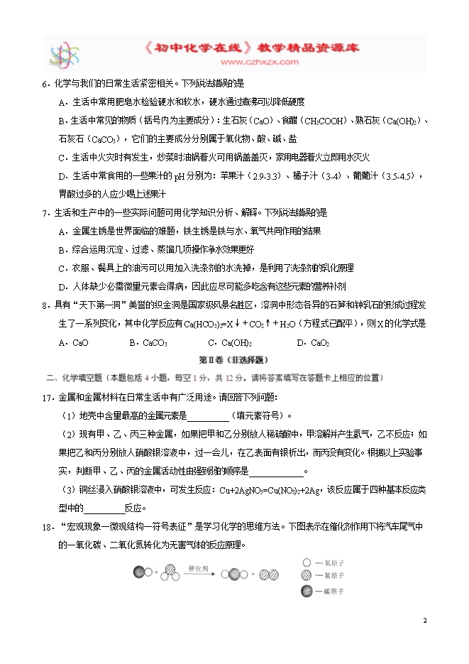 所属专辑: 《2017年各省市中考化学真题》专辑