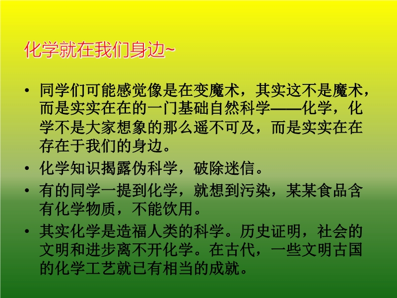 2017年秋沪教版九年级上册《1.1化学给我们带来什么》教学课件