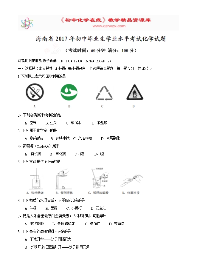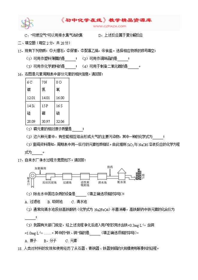 所属专辑: 《2017年各省市中考化学真题》专辑