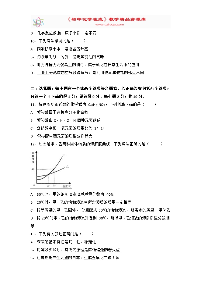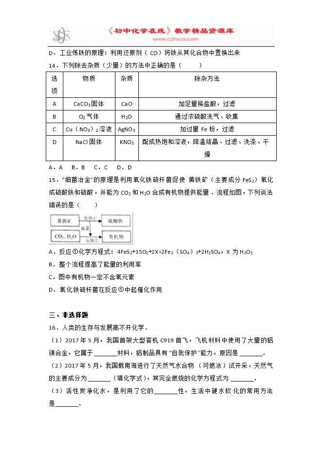 所属专辑: 《2017年各省市中考化学真题》专辑