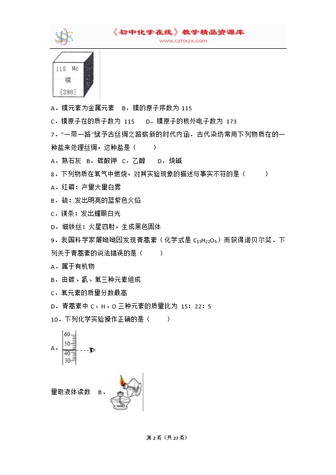 - 上一份试卷:2017年江西省中考化学试题(精校word版,无答案)