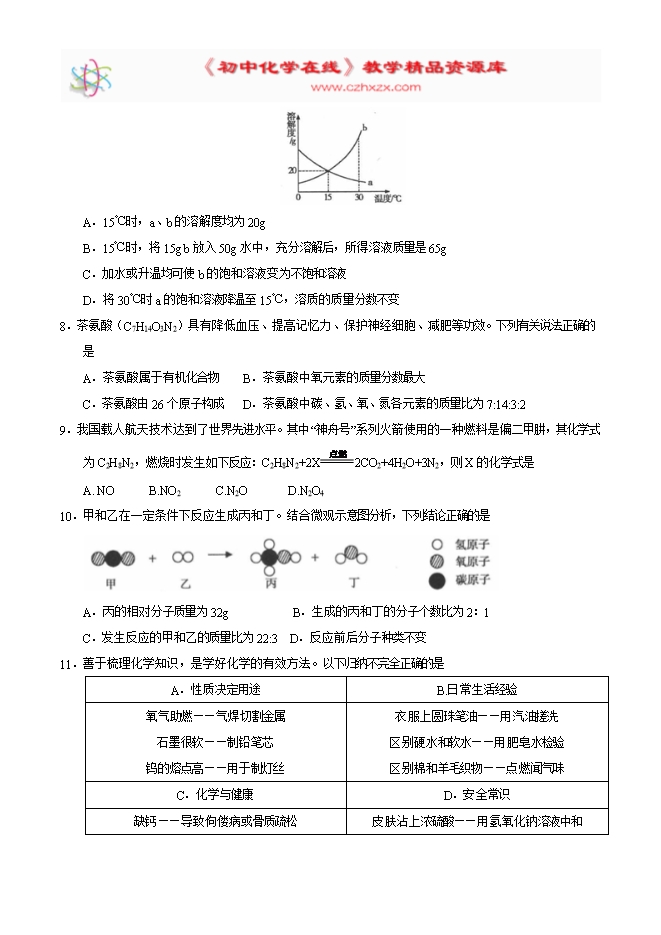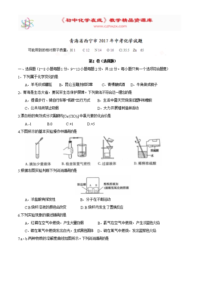 2017年青海省西宁市中考化学试题(精校word版,含答案)