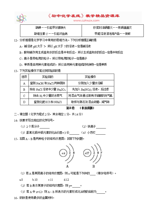 - 下一份试卷:2017年陕西省中考化学试题(精校word版,含答案)