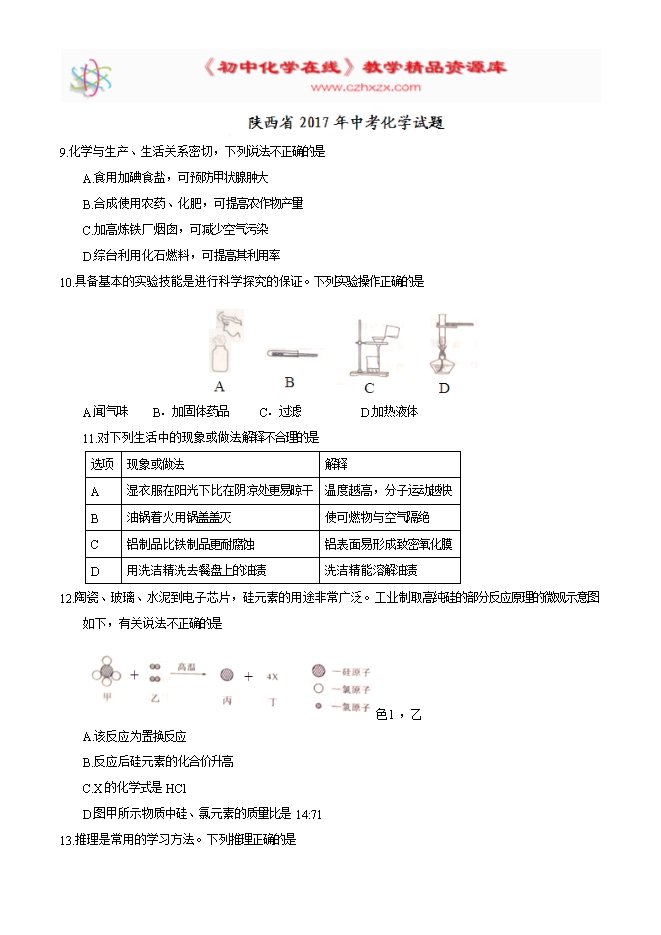 2017年陕西省中考化学试题(精校word版,含答案)
