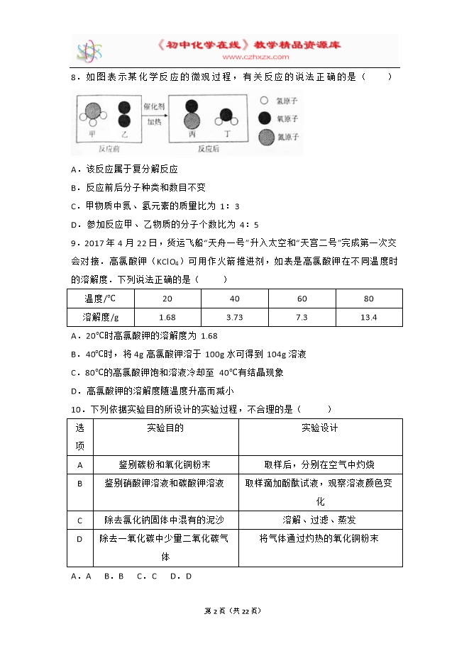 所属专辑: 《2017年各省市中考化学真题》专辑