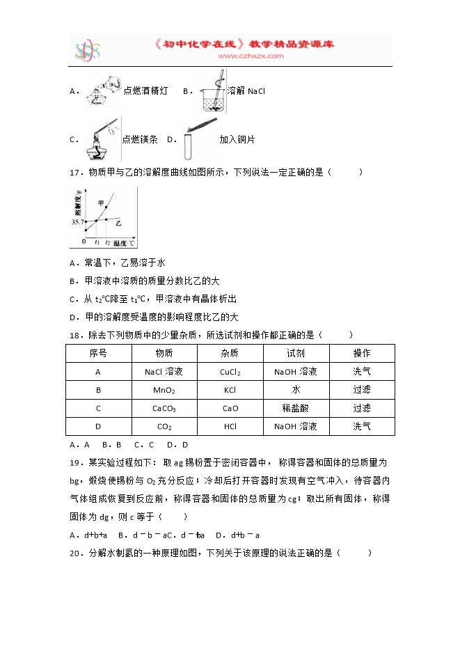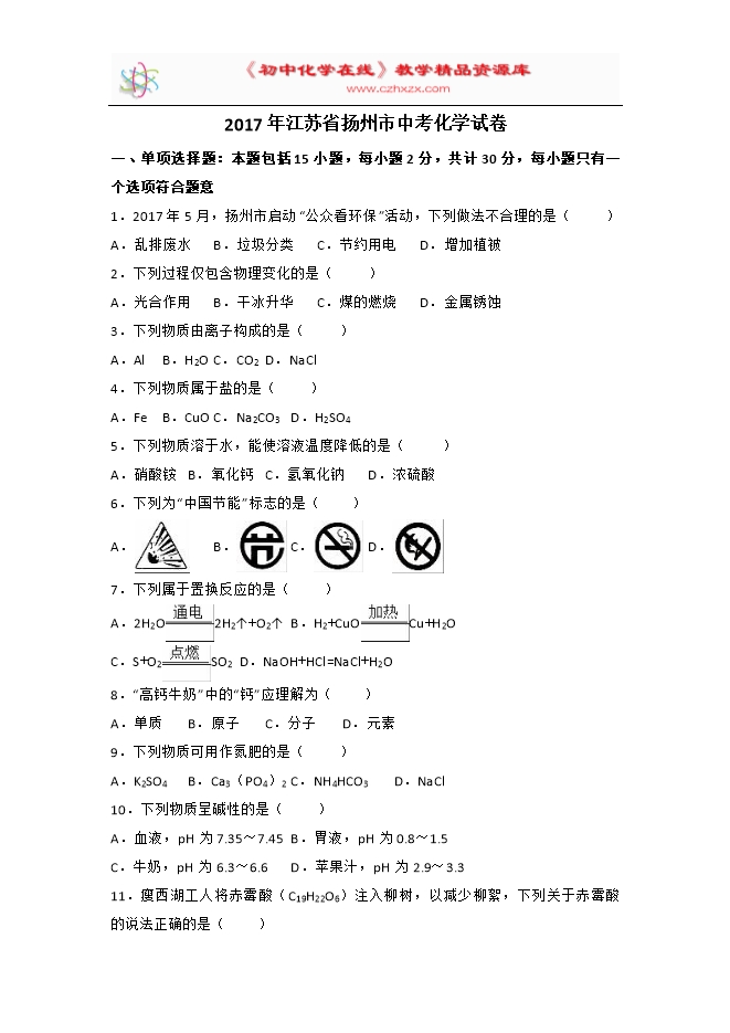 2017届江苏省扬州市中考化学试卷(解析版)