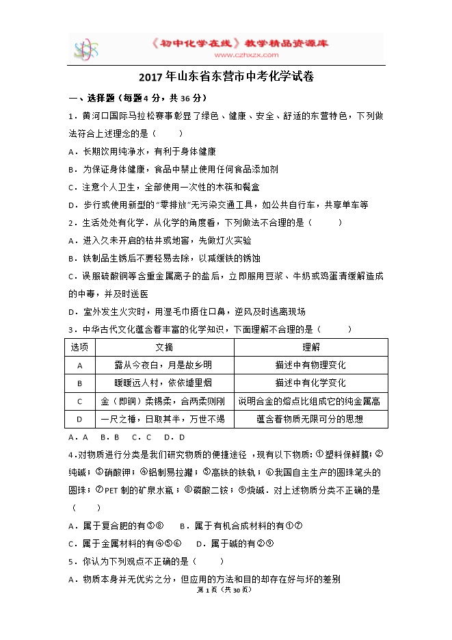 - 下一份试卷:2017年山东省济宁市中考化学试题(word版,含解析)