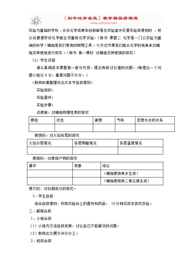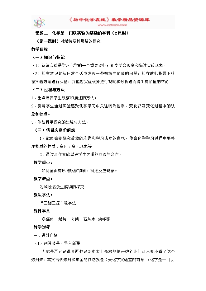 人教版九年级上册《1.2 化学是一门以实验为基础的学科》教学设计(2课时)