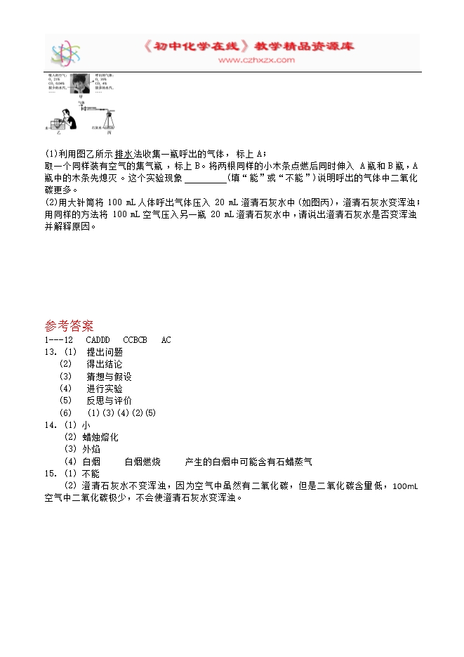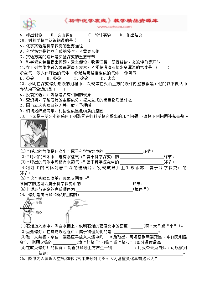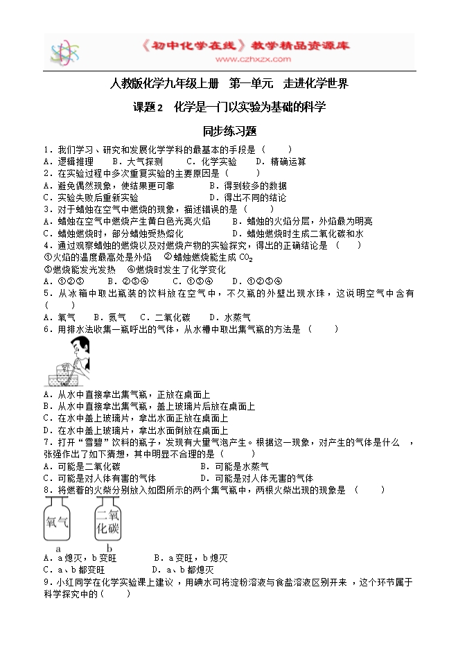 2017秋人教版九年级化学上册《第一单元课题2 化学是一门以实验为基础的科学》同步训练(word版含答案)