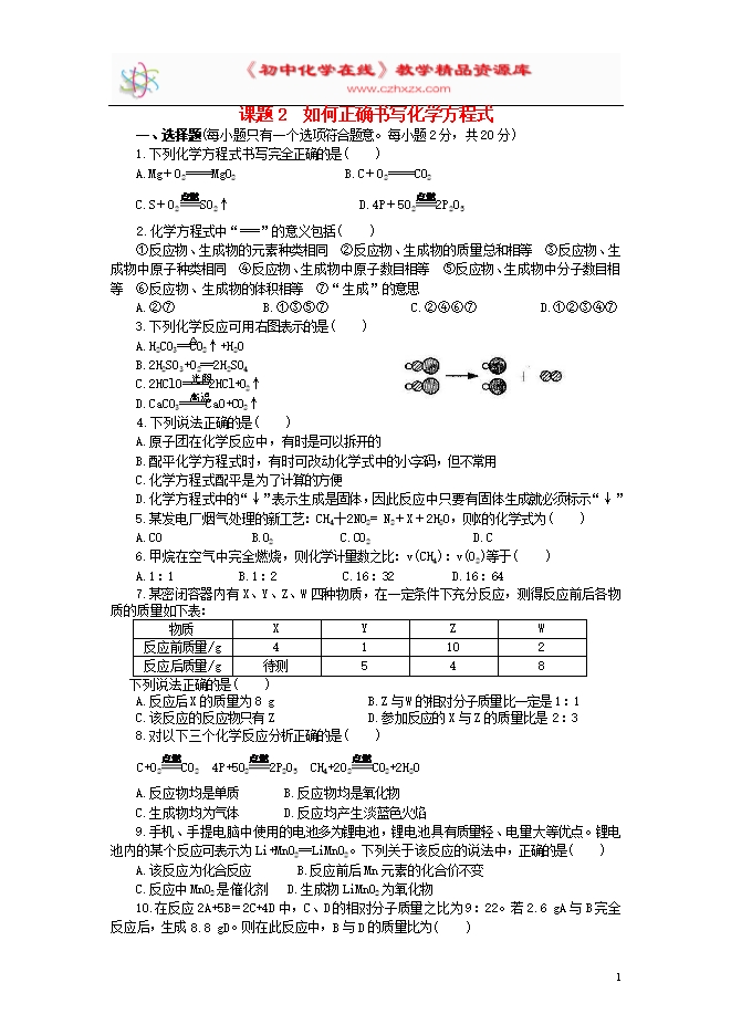 2017秋人教版九年级化学上册《第五单元课题2 如何正确书写化学方程式》同步训练(word版含答案)