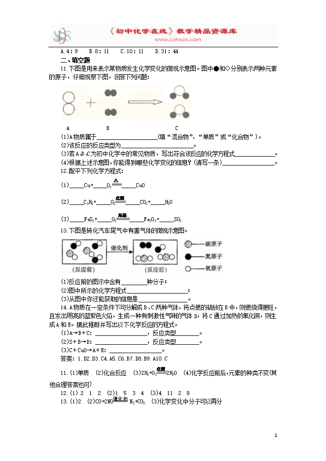 所属专辑: 《2017年秋人教版初中化学同步训练》专辑