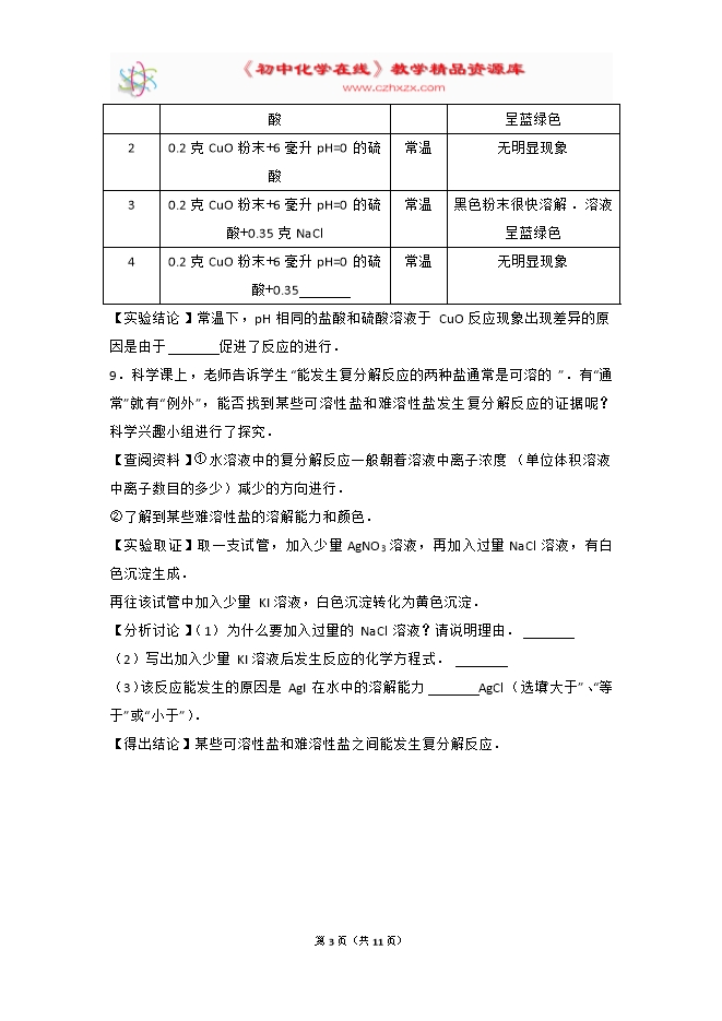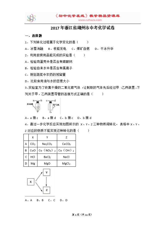 2017年浙江省湖州市中考化学试卷(word解析版)