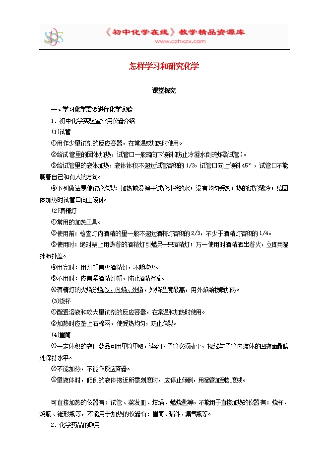 沪教版九年级化学上册《1.3怎样学习和研究化学》学案