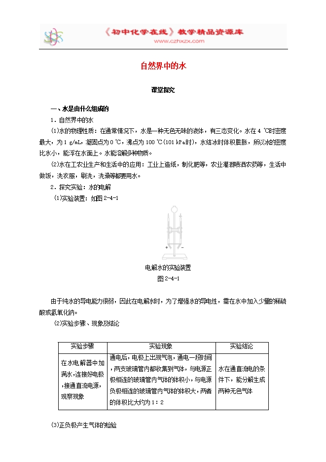 沪教版九年级化学上册《2.3自然界中的水》学案