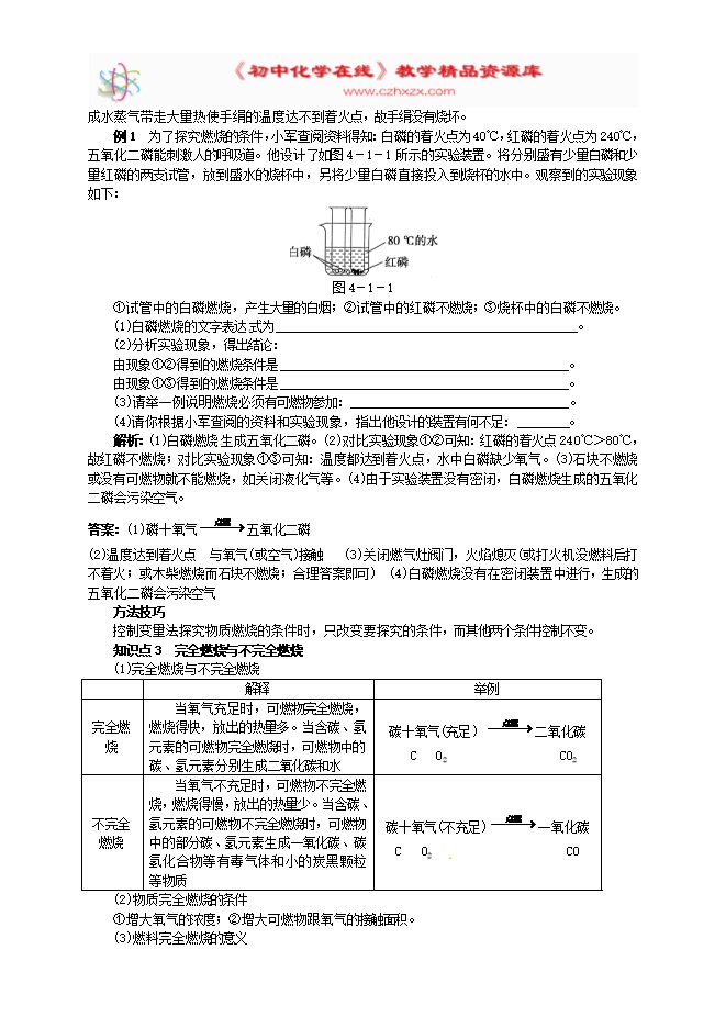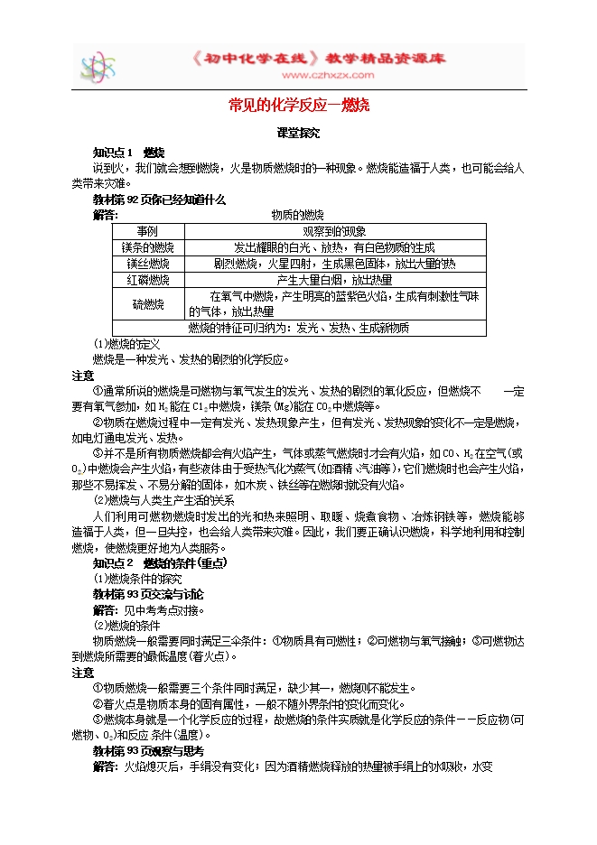 沪教版九年级化学上册《4.1常见的化学反应—燃烧》学案