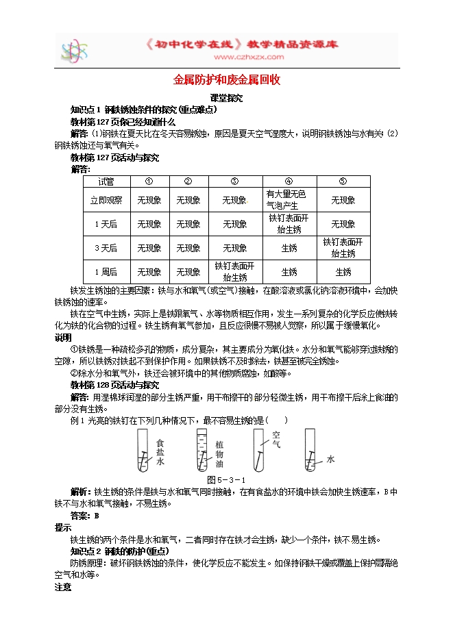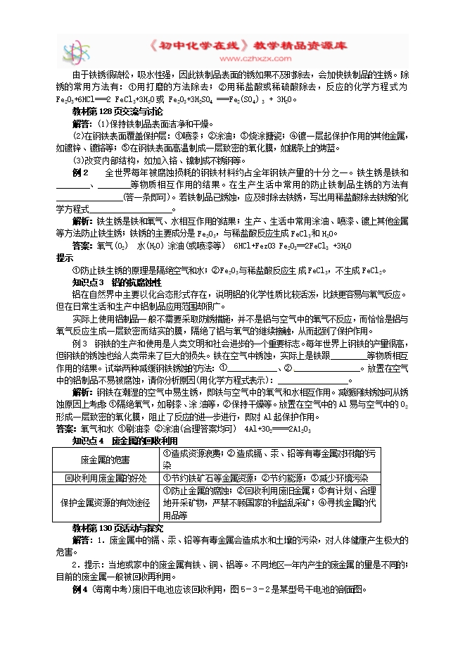 沪教版九年级化学上册《5.3金属防护和废金属回收》学案