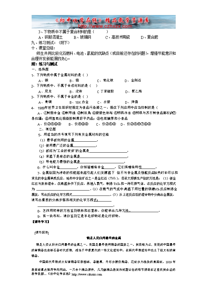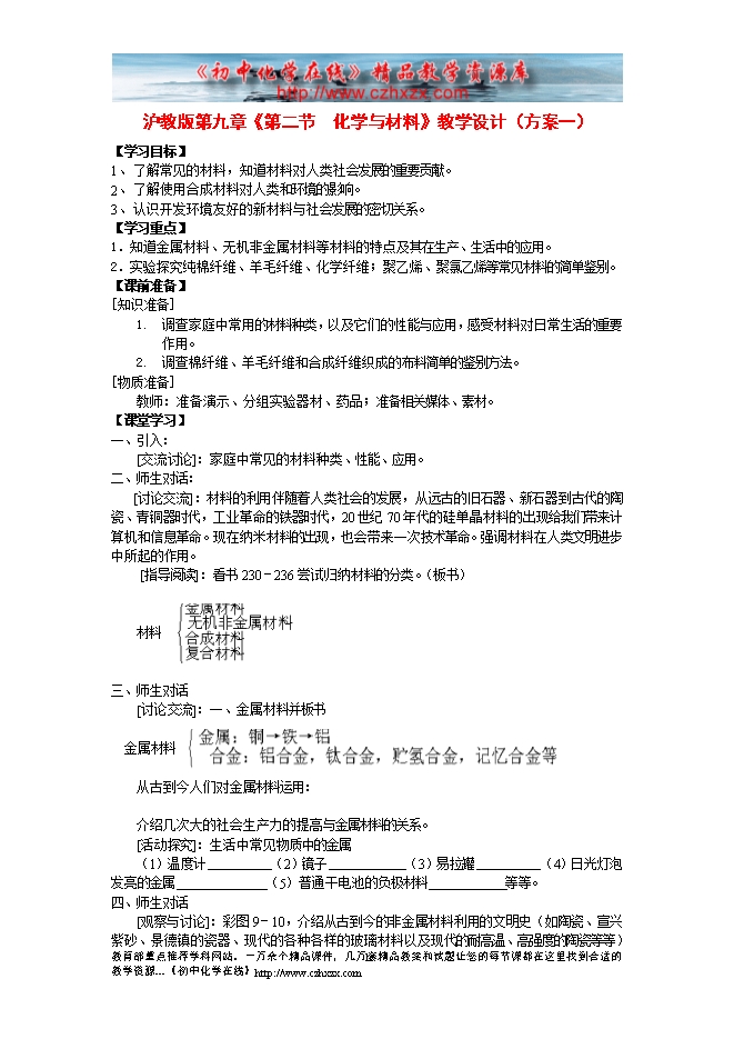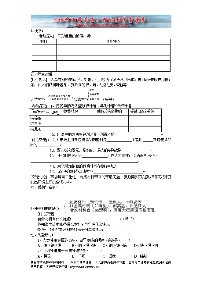 沪教版初中化学《第九章第二节 新型材料的研制》教学设计(方案一)