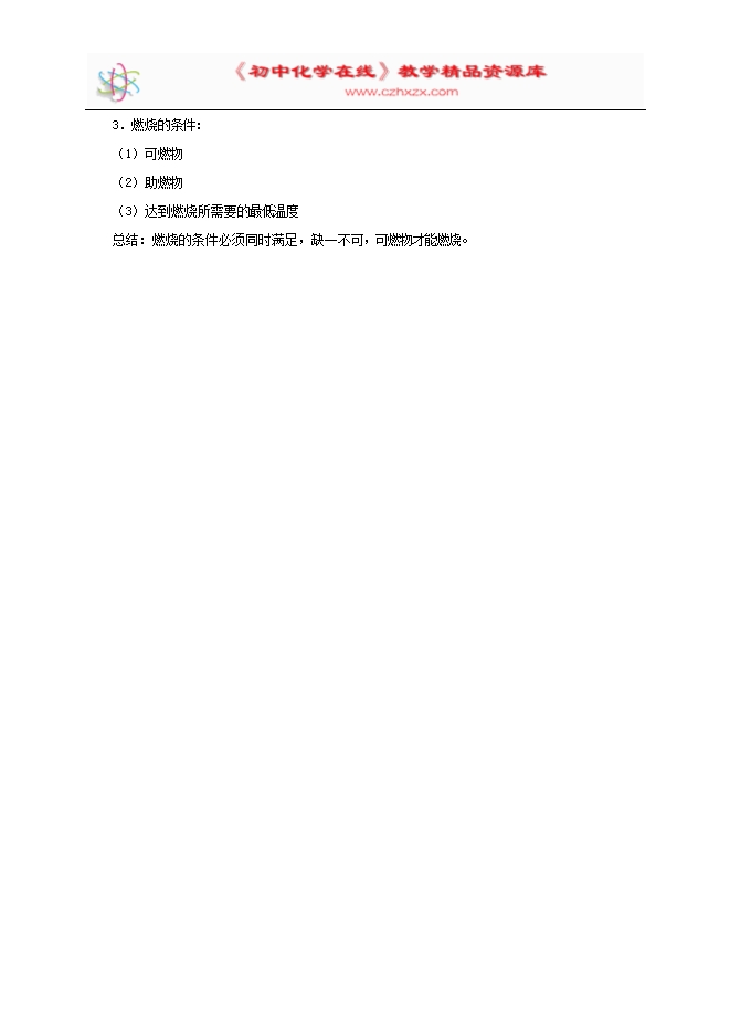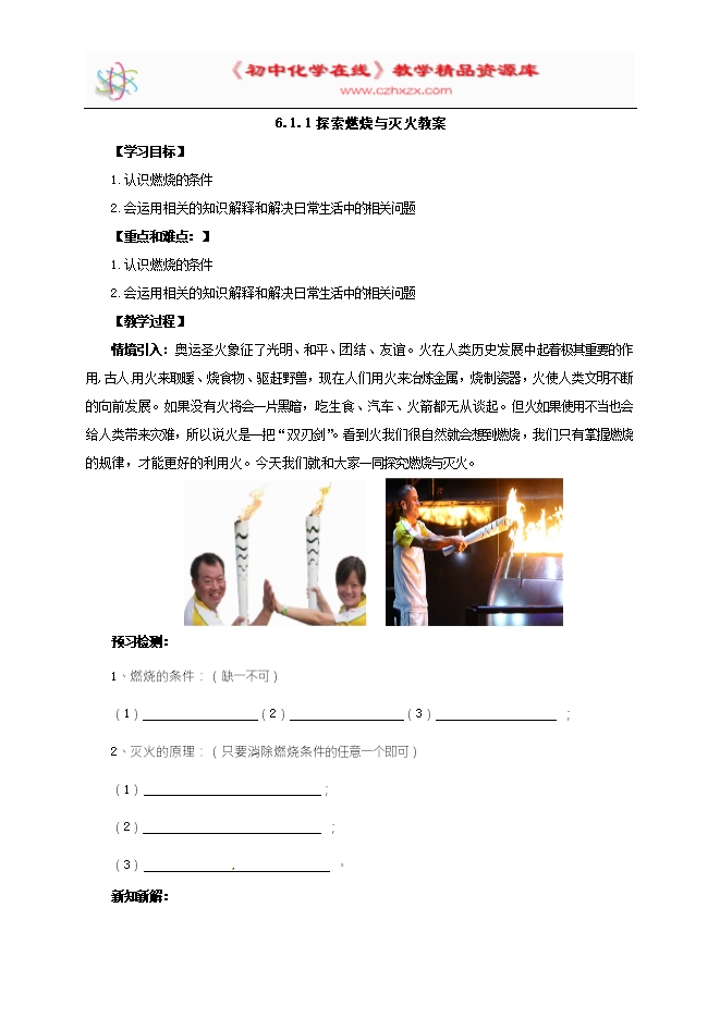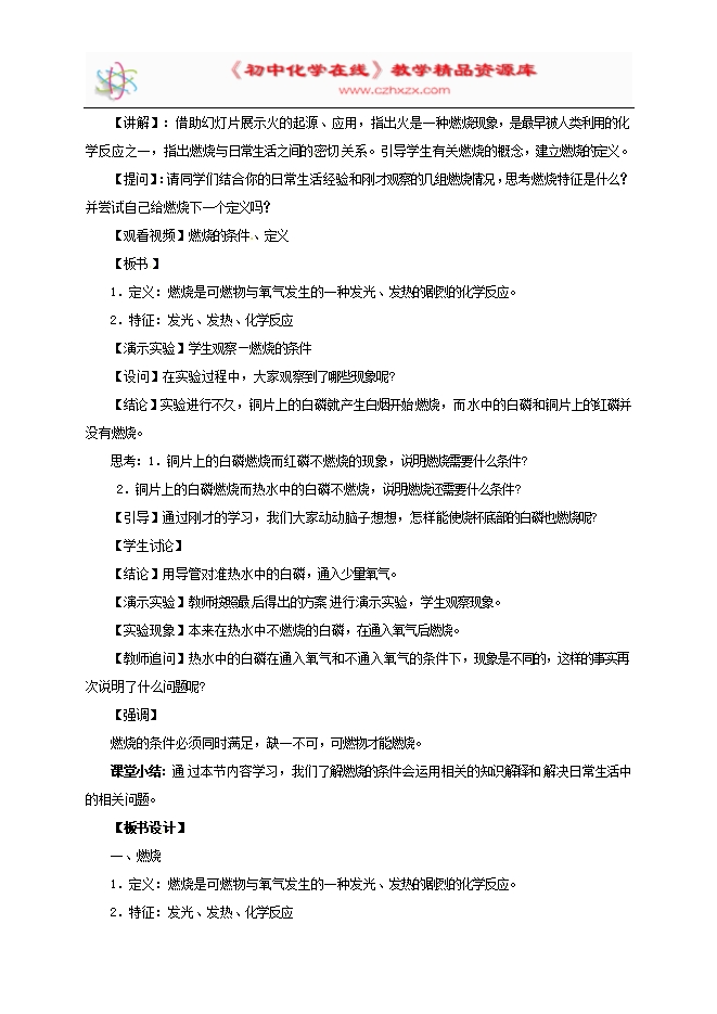 - 下一份资料:京改版九年级化学上册《6.1探索燃烧与灭火(第二课时)》教案