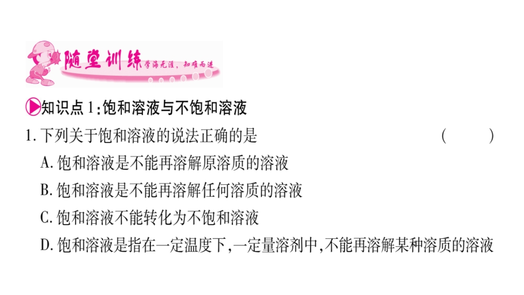 2018年人教版九年级化学下册《第九单元课题2 溶解度》习题课件(35张PPT)