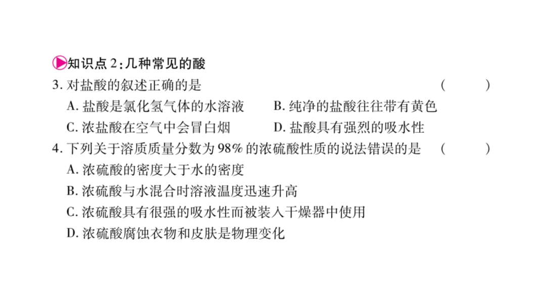 【内容简介】2018年人教版九年级化学下册《第十单元课题1 常见的酸和碱》习题课件(45张PPT)