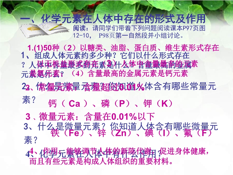 2018年人教版九年级化学下册《第十二单元课题2 化学元素与人体健康》教学课件(42张PPT)