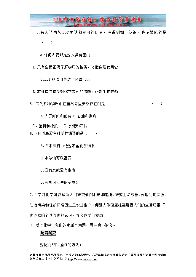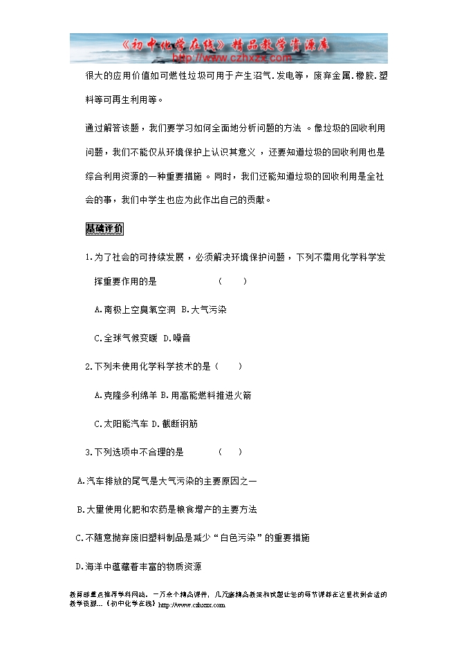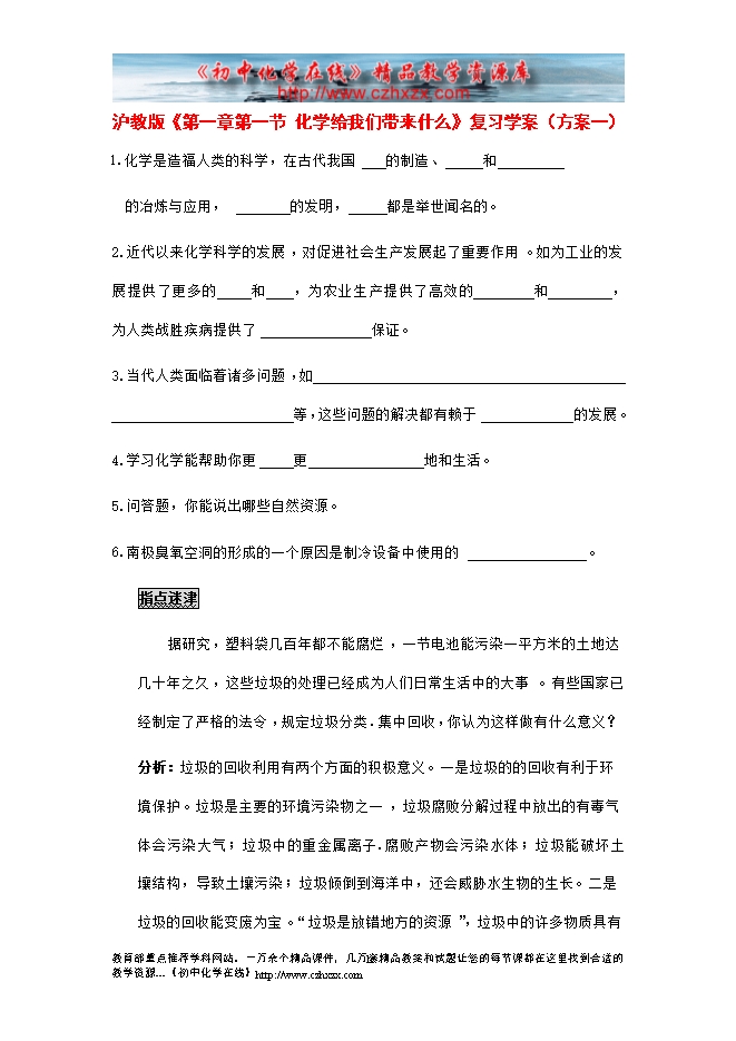 沪教版《第一章第一节 化学给我们带来什么》复习学案(方案一)