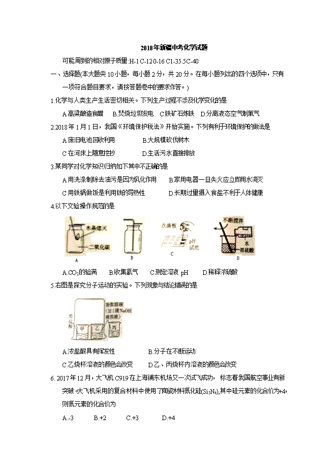 所属专辑: 《2018年各省市中考化学真题》专辑