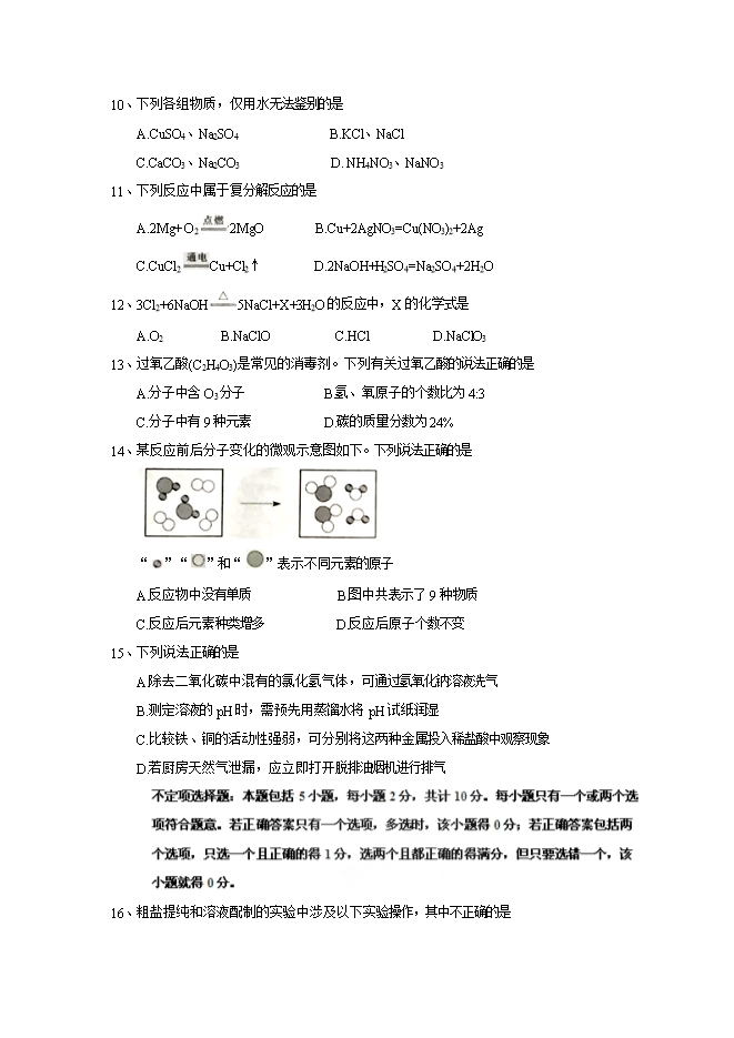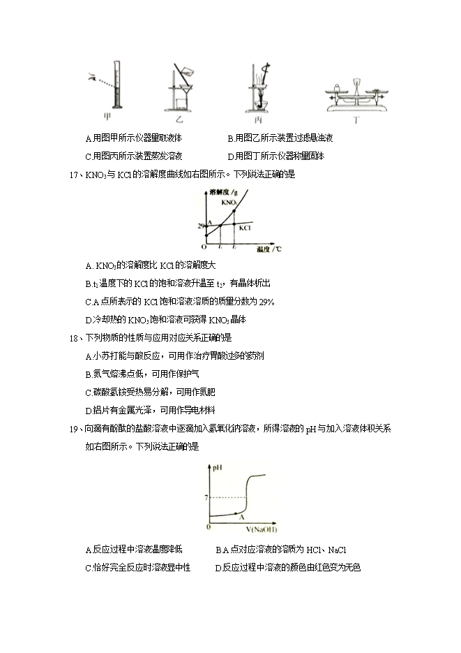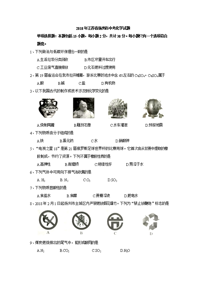 2018年江苏省扬州市中考化学试题(word版,含答案)