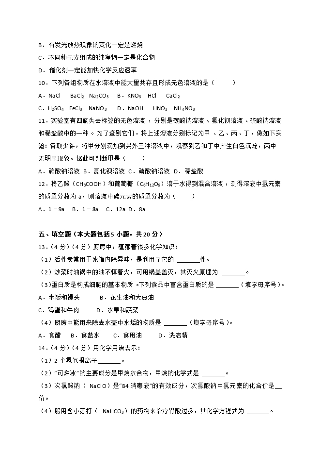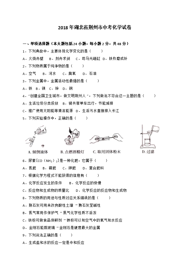 2018年湖北省荆州市中考化学试题(word版,含答案解析)