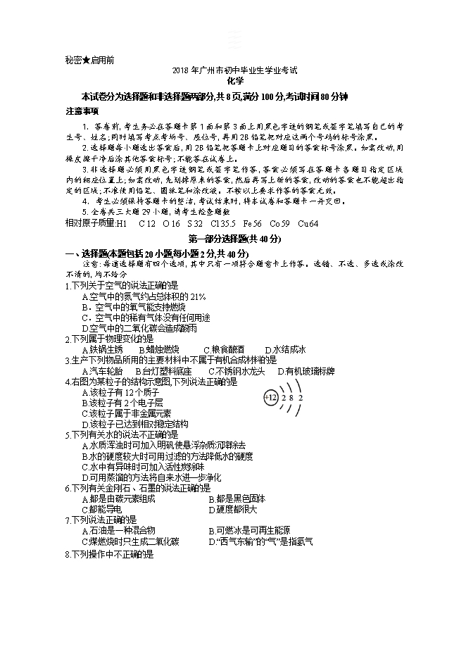 所属专辑: 《2018年各省市中考化学真题》专辑