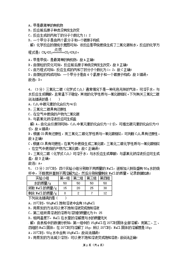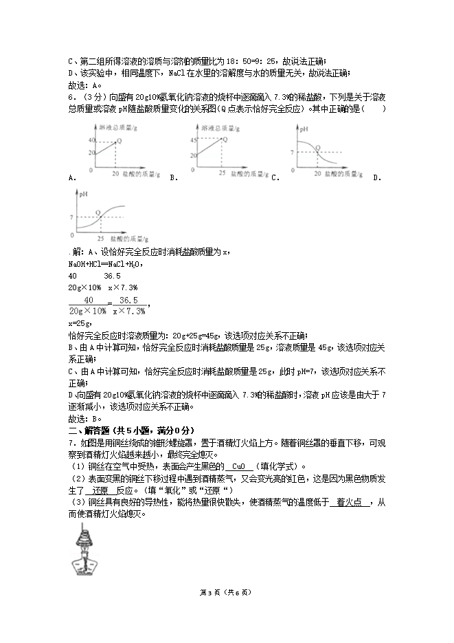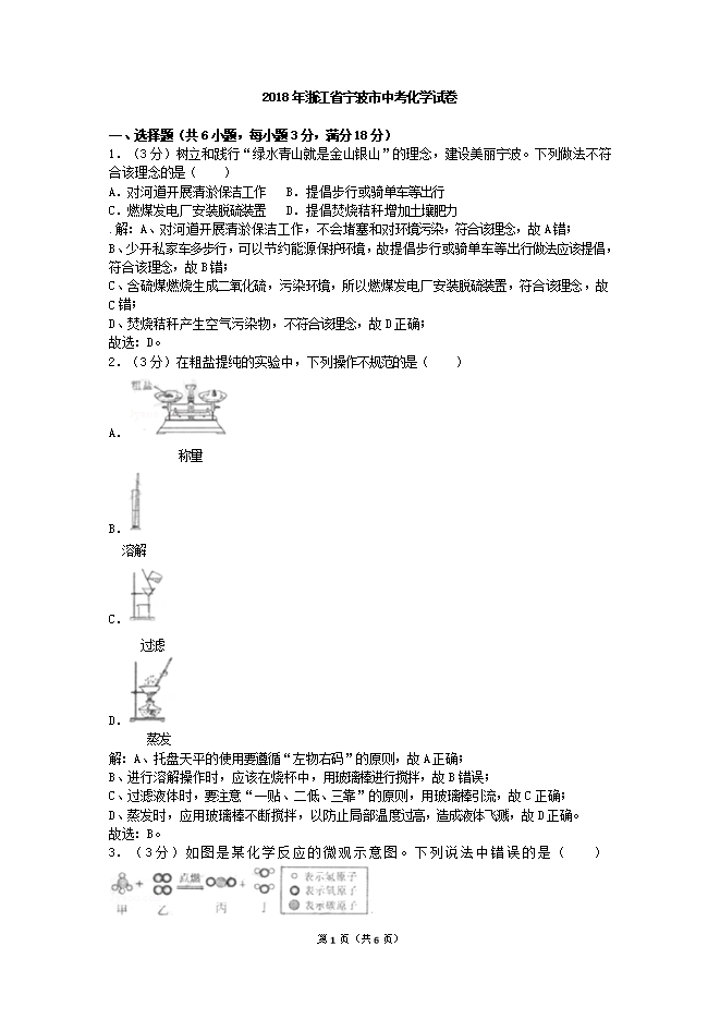 2018年浙江省宁波市中考化学试题(word版含答案解析 )