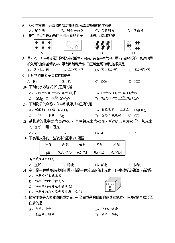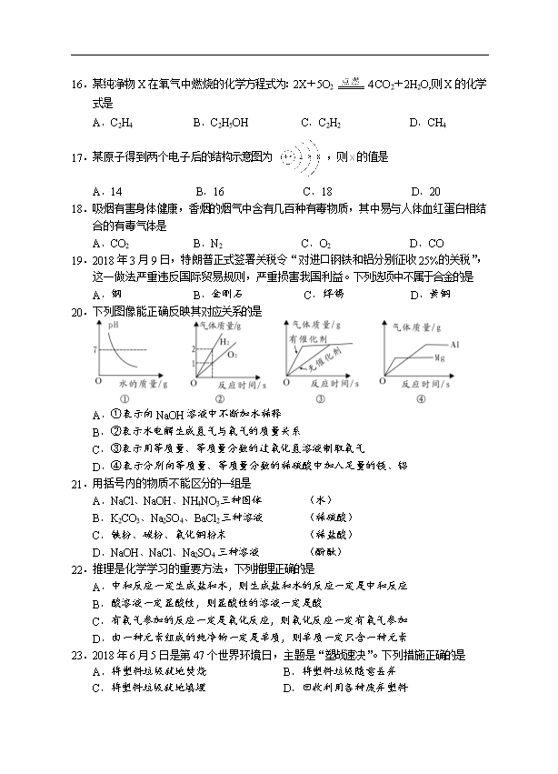 所属专辑: 《2018年各省市中考化学真题》专辑