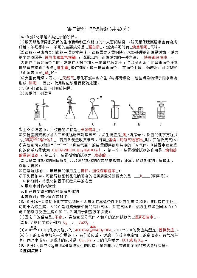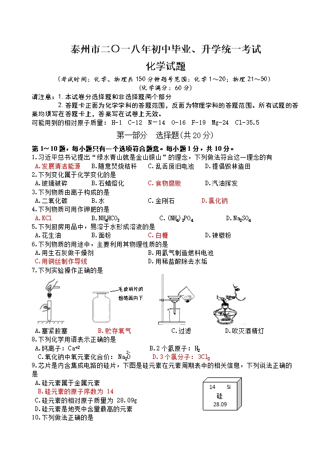 2018年江苏省泰州市中考化学试题(word版,含答案)
