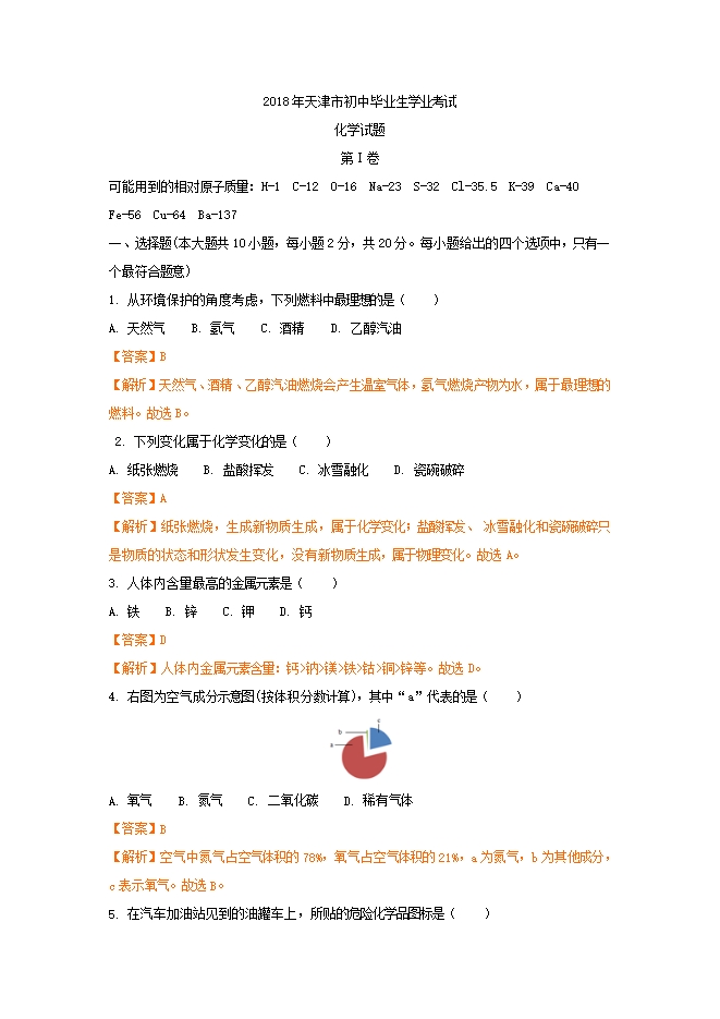 所属专辑: 《2018年各省市中考化学真题》专辑