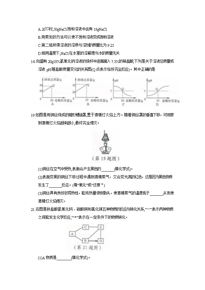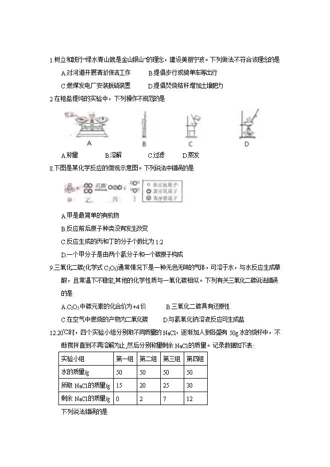 2018年浙江省宁波市中考化学试题(word版,含答案)