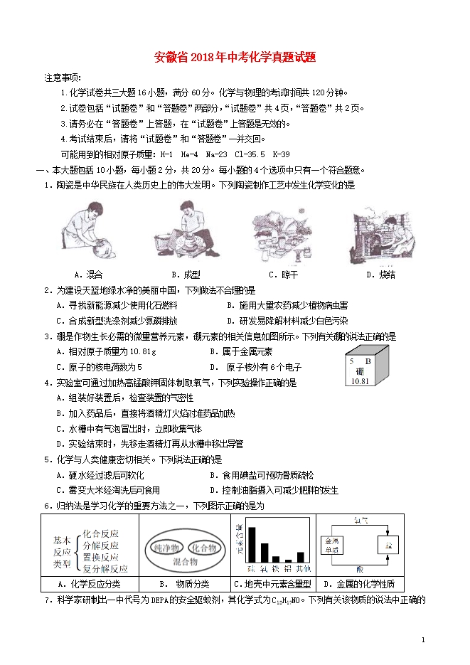 所属专辑: 《2018年各省市中考化学真题》专辑