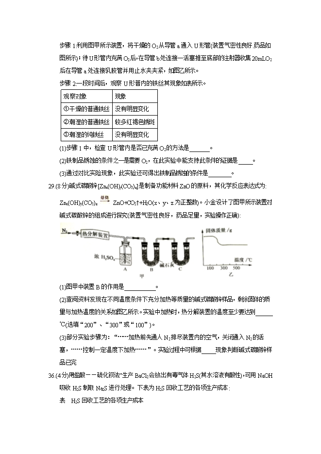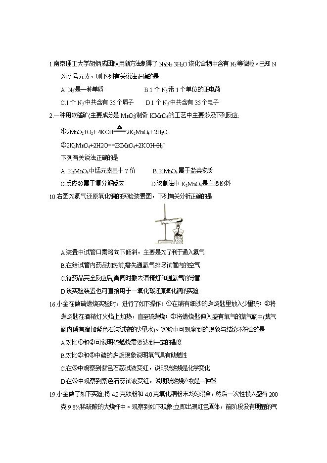 2018年浙江省杭州市中考化学试题(word版,含答案)