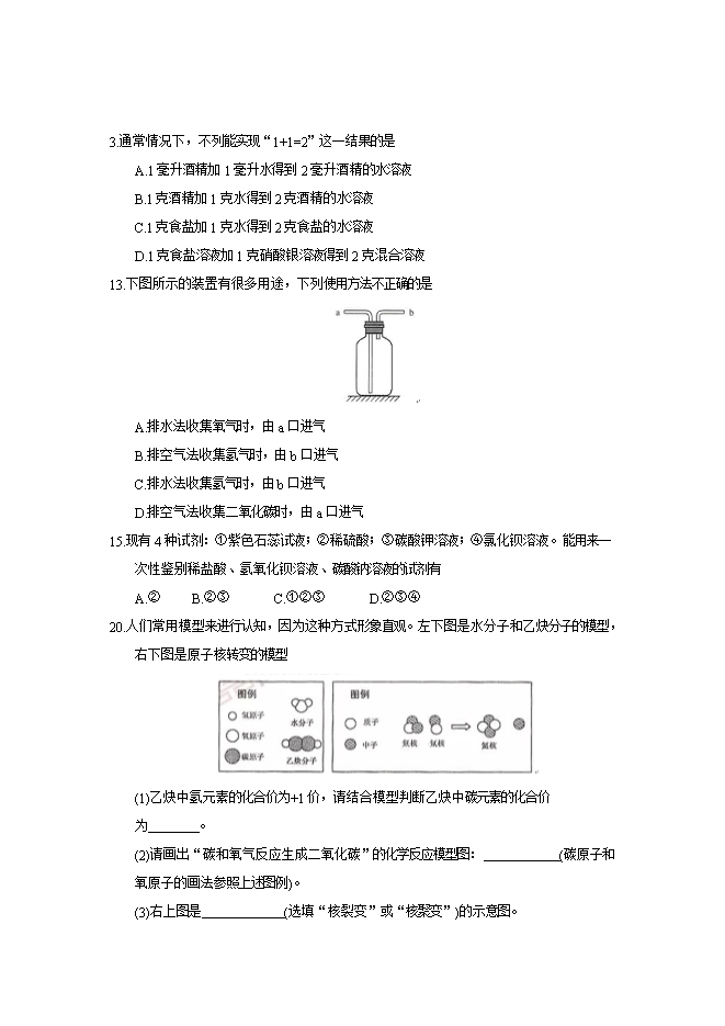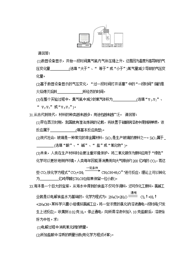 2018年浙江省湖州市中考化学试题(word版,含答案)